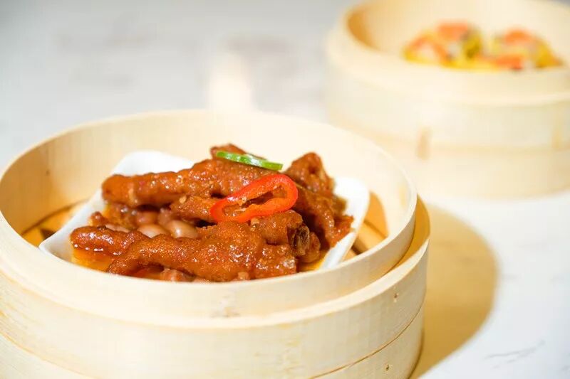 在广东喝早茶,有一道茶点是必点的,那就是豉汁凤爪。鸡爪经过炸制,又饱饱的吸满了调味汁,继而蒸,红香酥软,一吮即脱骨。再加上诸多酱料的入味,齿頬留香!